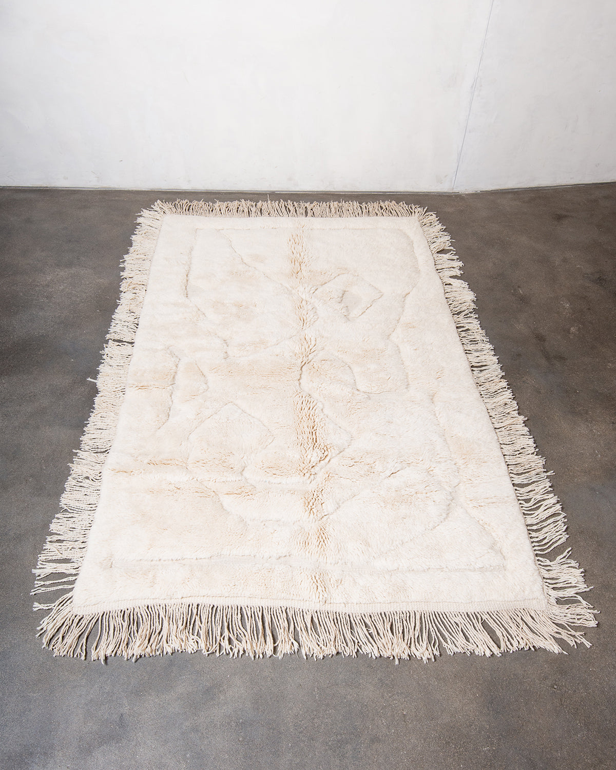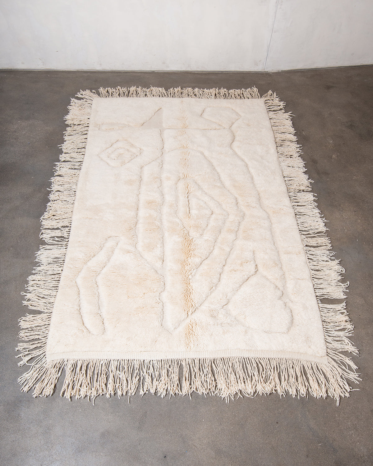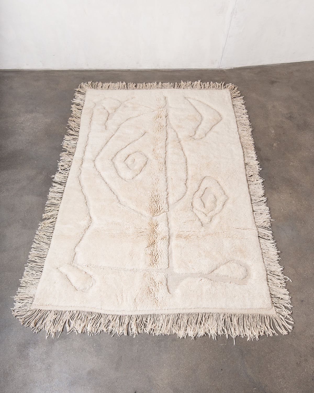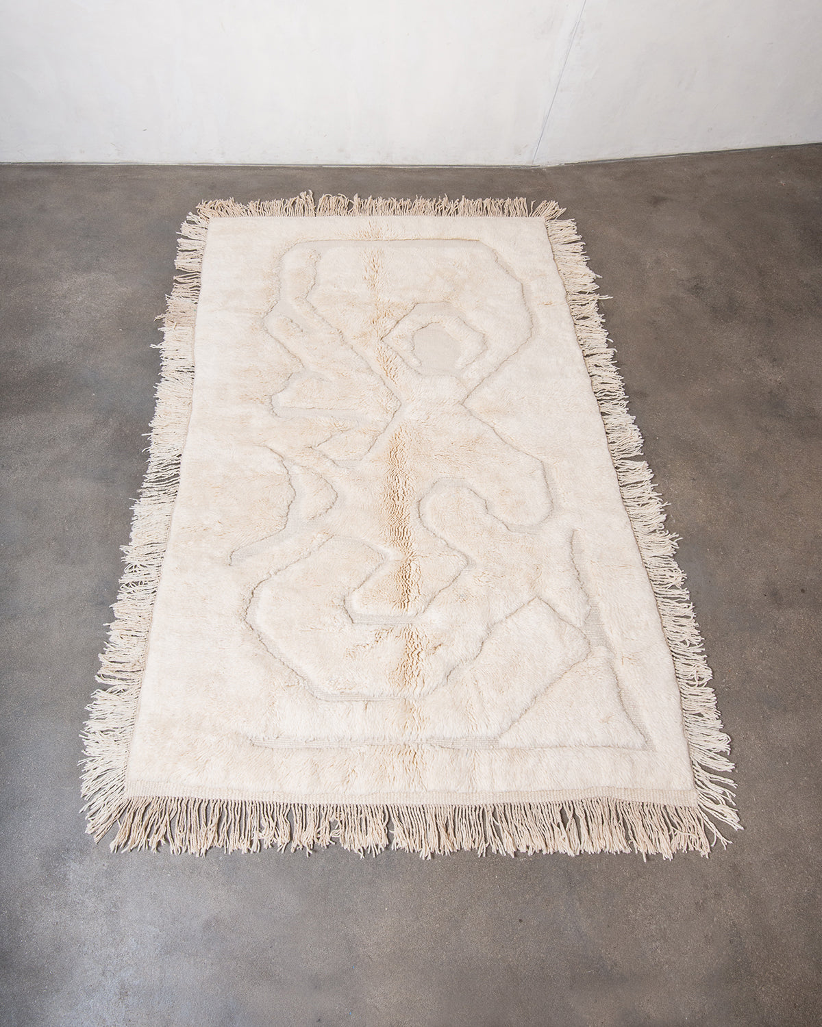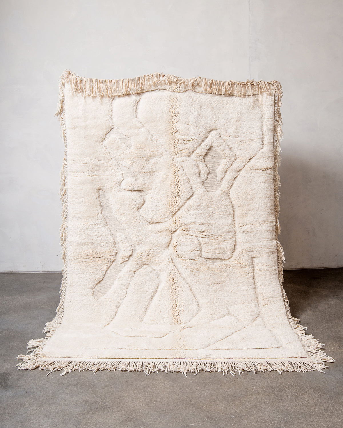 Developed from Malaika's drawings in collaboration with the Berberlin team, beautiful, high-quality Beni M'rirt carpets were created from the finest natural sheep's wool; wool that has been carefully washed several times and tightly knotted in a family business in the Middle Atlas Mountains of Morocco, with whom Berberlin works exclusively.