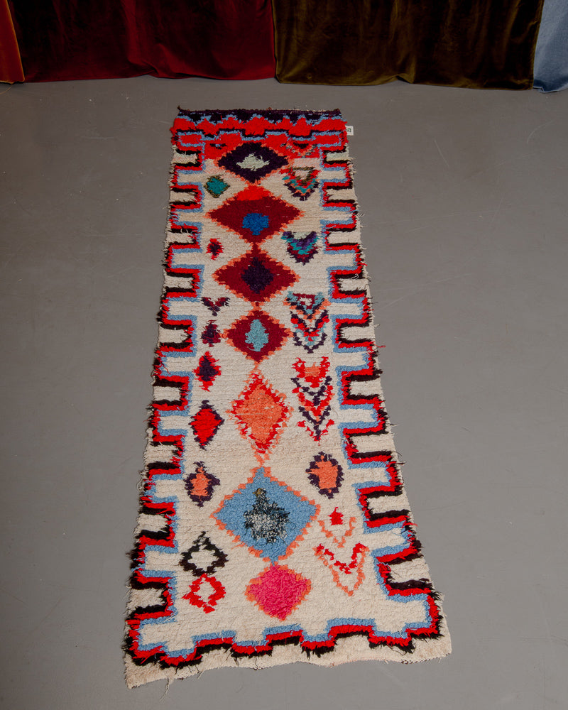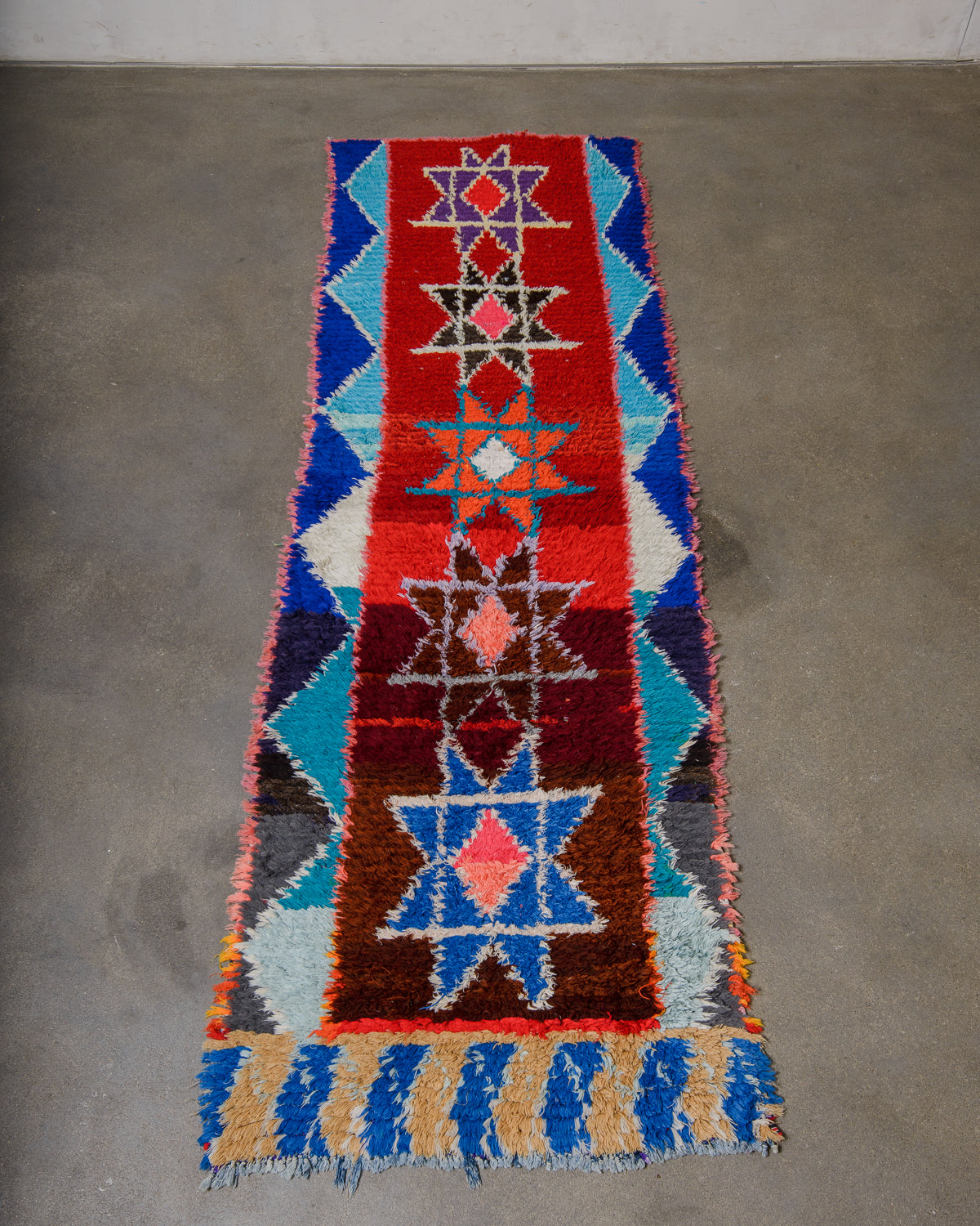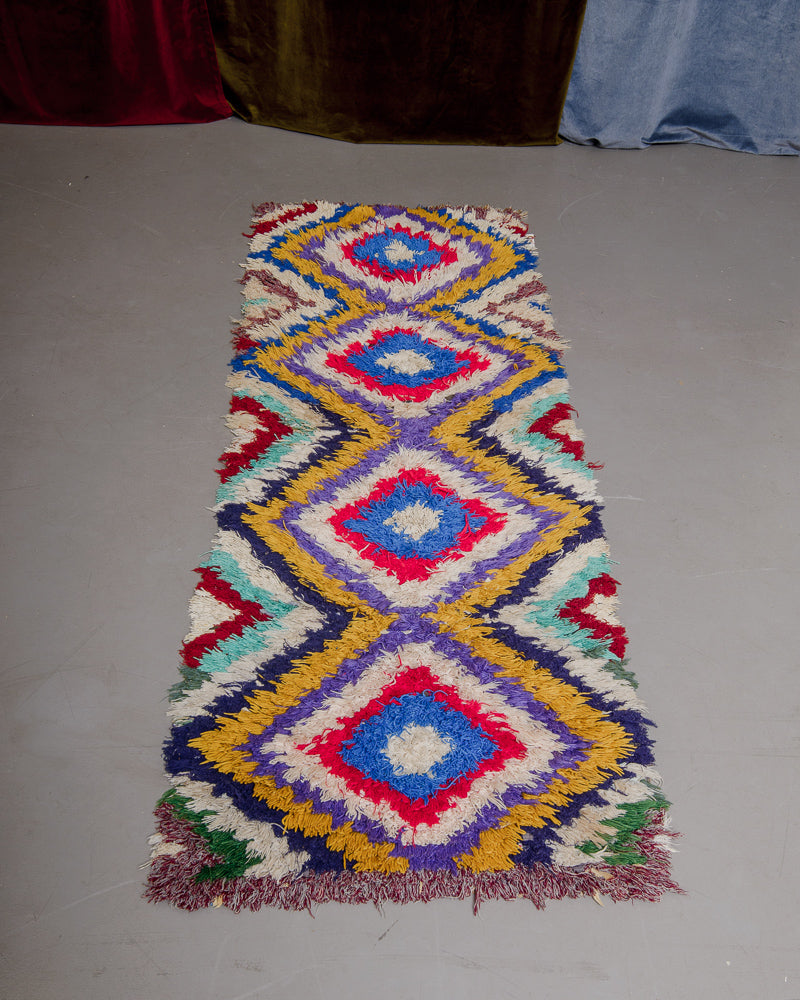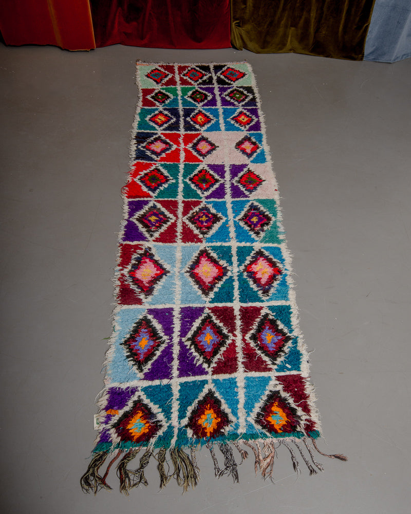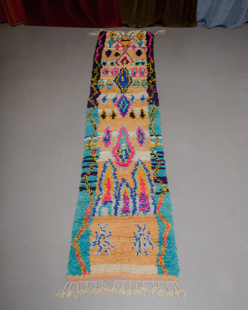 Our Berberlin runner rugs come in a variety of styles. From sturdy and colourful Boucherouite which are made of a mix of recycled cotton, cloth and wool, to our soft and fluffy wool runners in an eclectic array of designs. Whichever room you are looking to furnish; whether bathroom, hall, kitchen or even bedroom, a runner can be the perfect final addition that brings it all together.